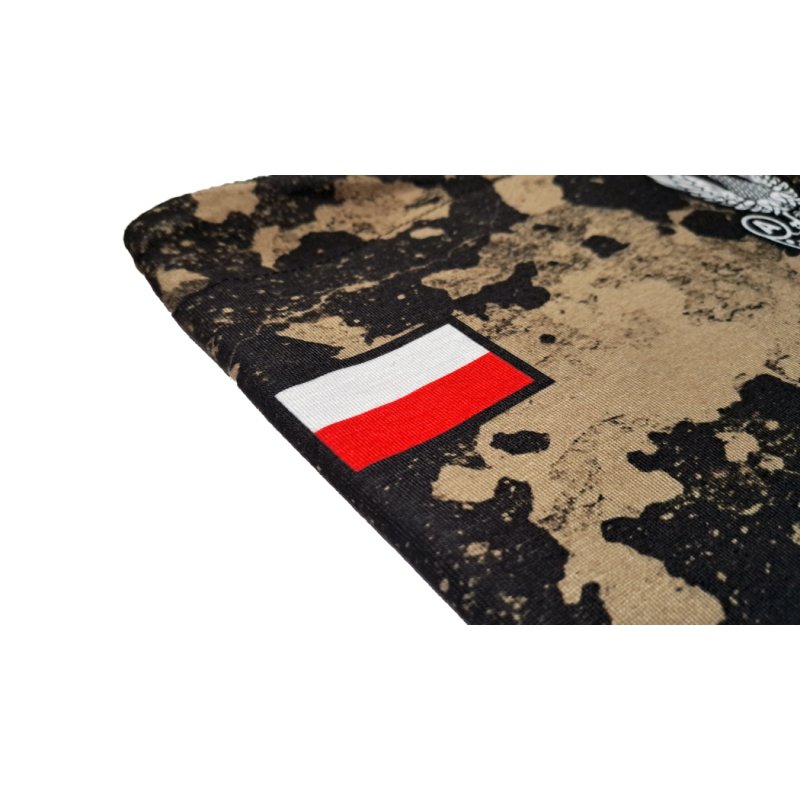 Całkiem nowy styl w naszej ofercie! Tło komina to kolory khaki i czarny z efektami pęknięć, przetarć, które optycznie dają finalnie także efekt camo. To bardzo ciekawa kompozycja graficzna, zwłaszcza w zestawieniu z wierzchnią odzieżą wojskową. Na środku komina znajduje się biały orzeł Armii Krajowej, natomiast na jednym z boków kilkucentymetrowa flaga Polski. Militarny klimat tła oraz te proste elementy dają bardzo ciekawy efekt końcowy, który przypadnie do gustu wszystkim ceniącym sobie klimaty wojskowe w zakresie odzieży i akcesoriów.